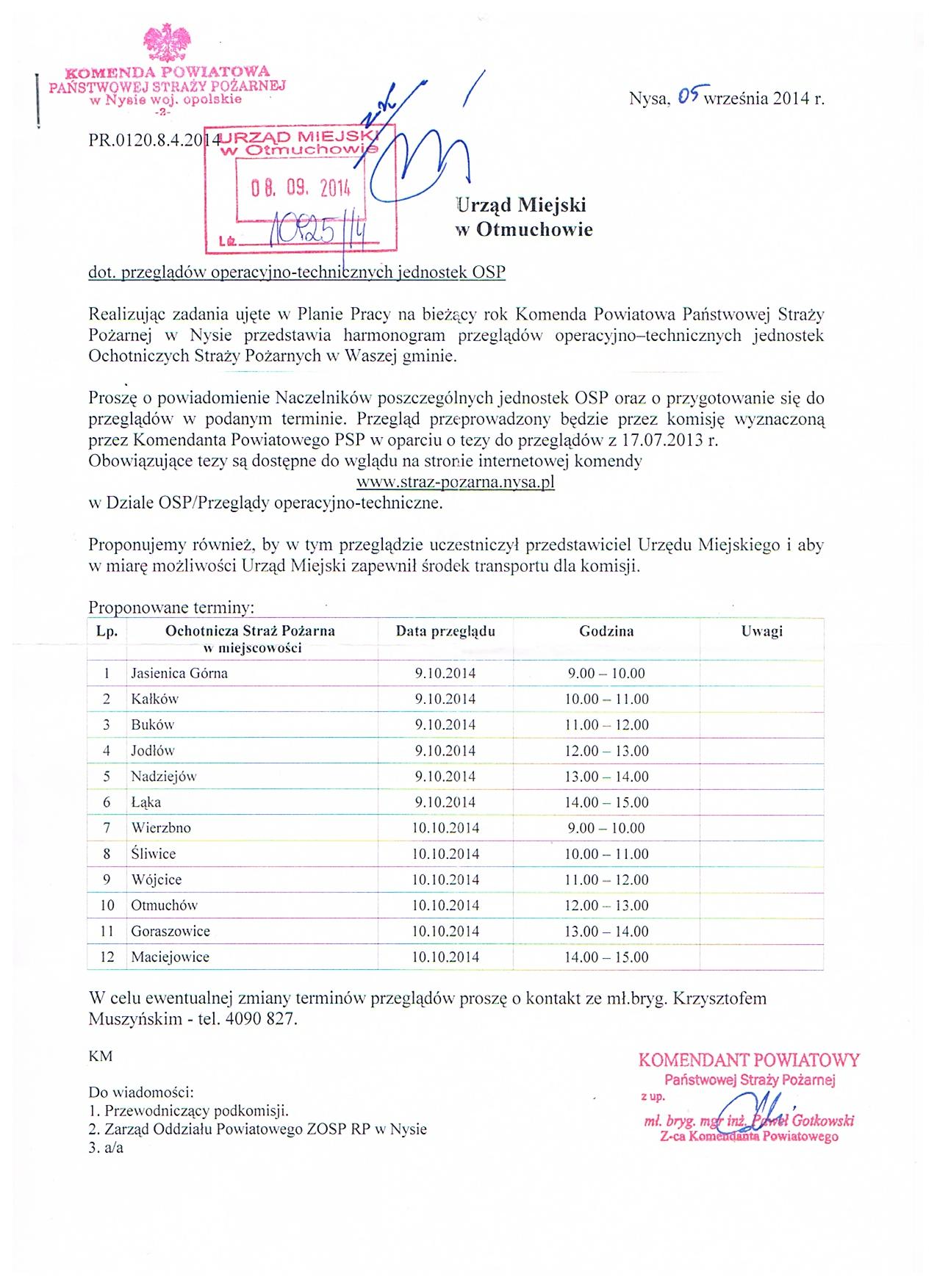 Ponadto informujemy, że zmiana organizacji ruchu będzie ogłaszana w prasie lokalnej i na stronie www.otmuchow.pl i www.gczk.otmu.pl.
